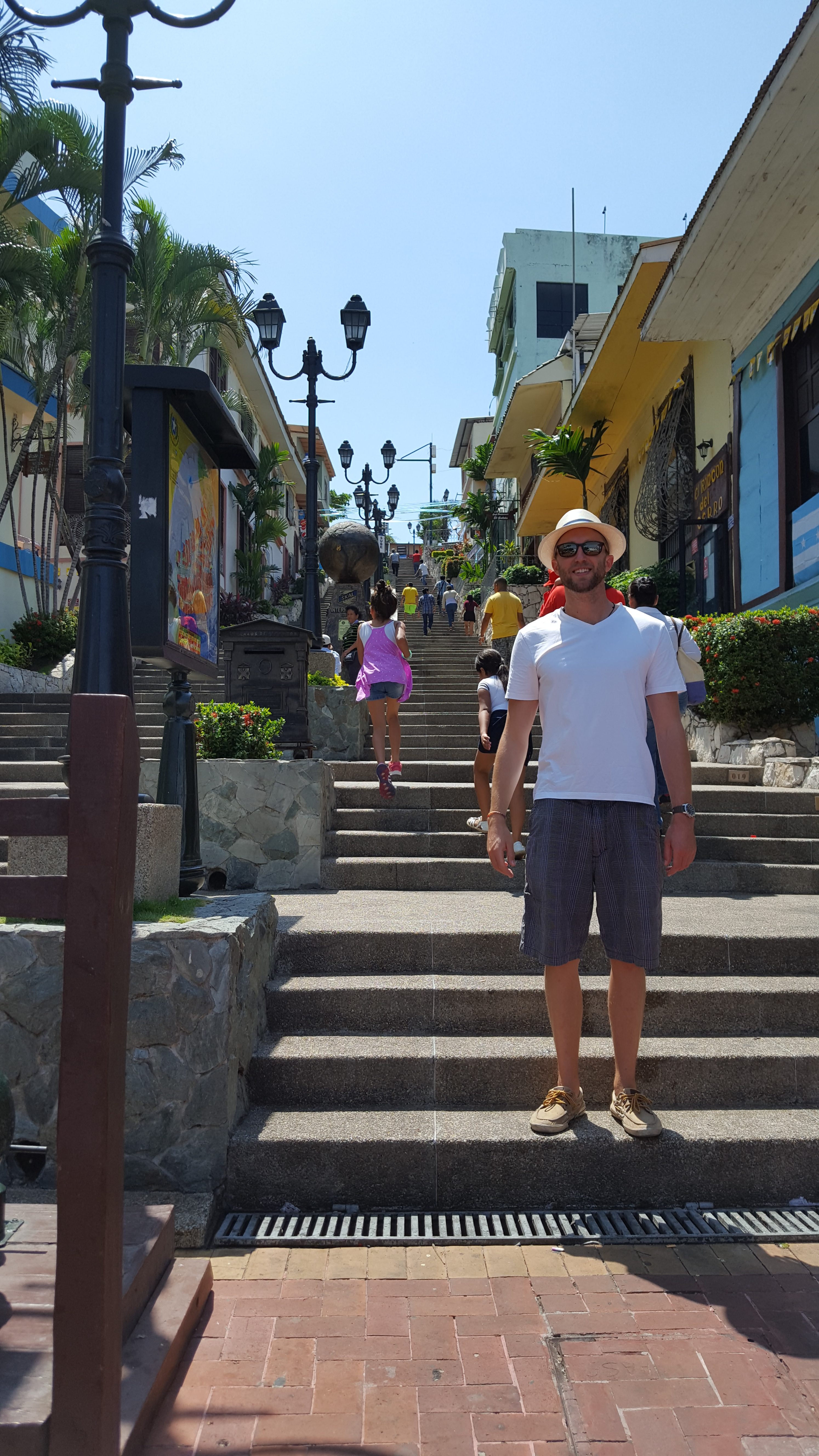 We got to the Malecón 2000 and spent a few hours looking around. This was the first time I heard the term ‘Malecón,’ but it is a popular term in Ecuador. It basically means boardwalk or seafront, and almost all the coastal towns have a seaside street referred to as the Malecón. This one was built in 2000, so was a newer, trendier area of Guayaquil. There were nice attractions there, such as beautiful parks, an IMAX theatre, and many shops and restaurants. Brightly painted houses line the old fashioned, colonial era streets making it a quite charming part of the city.