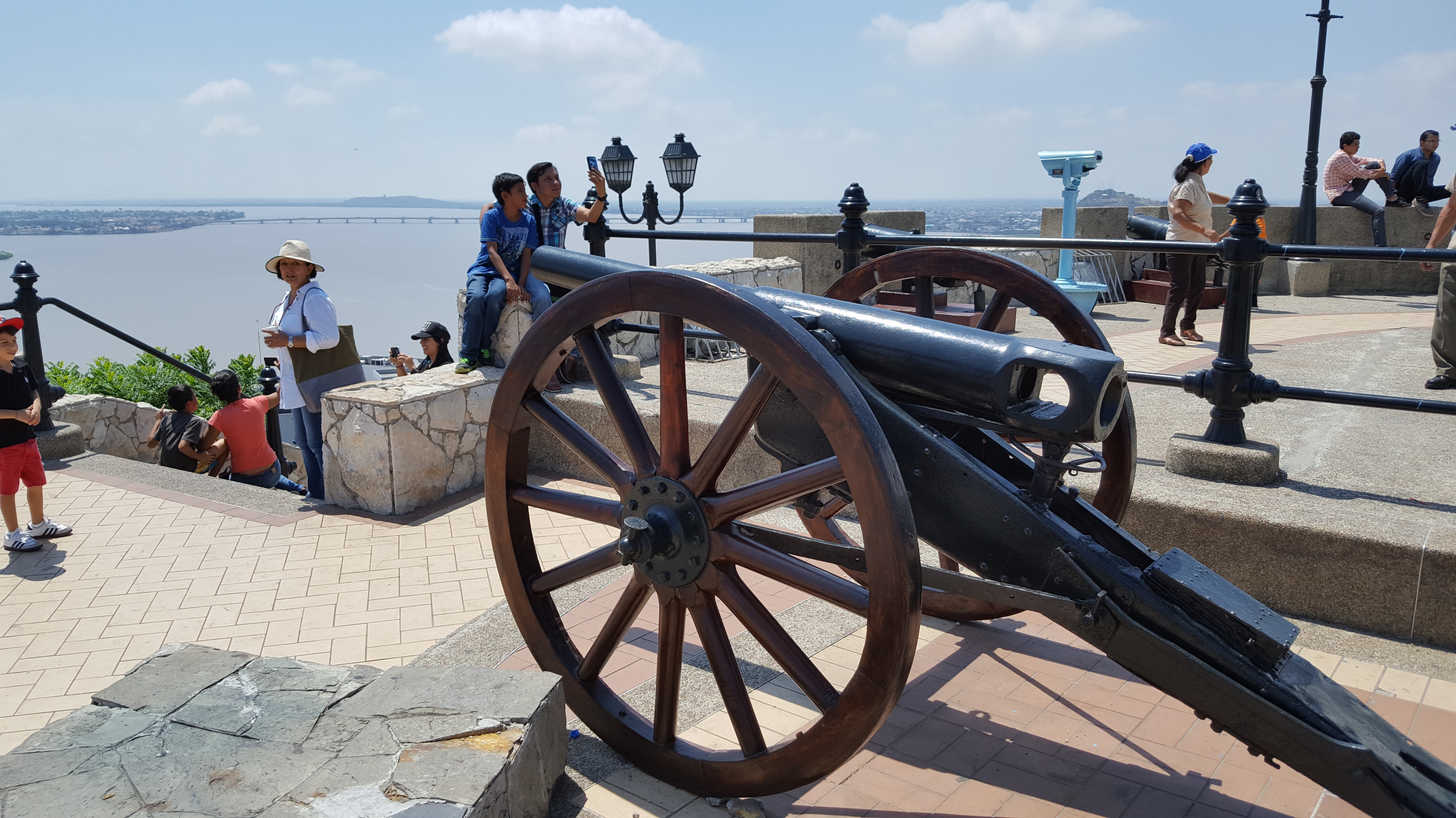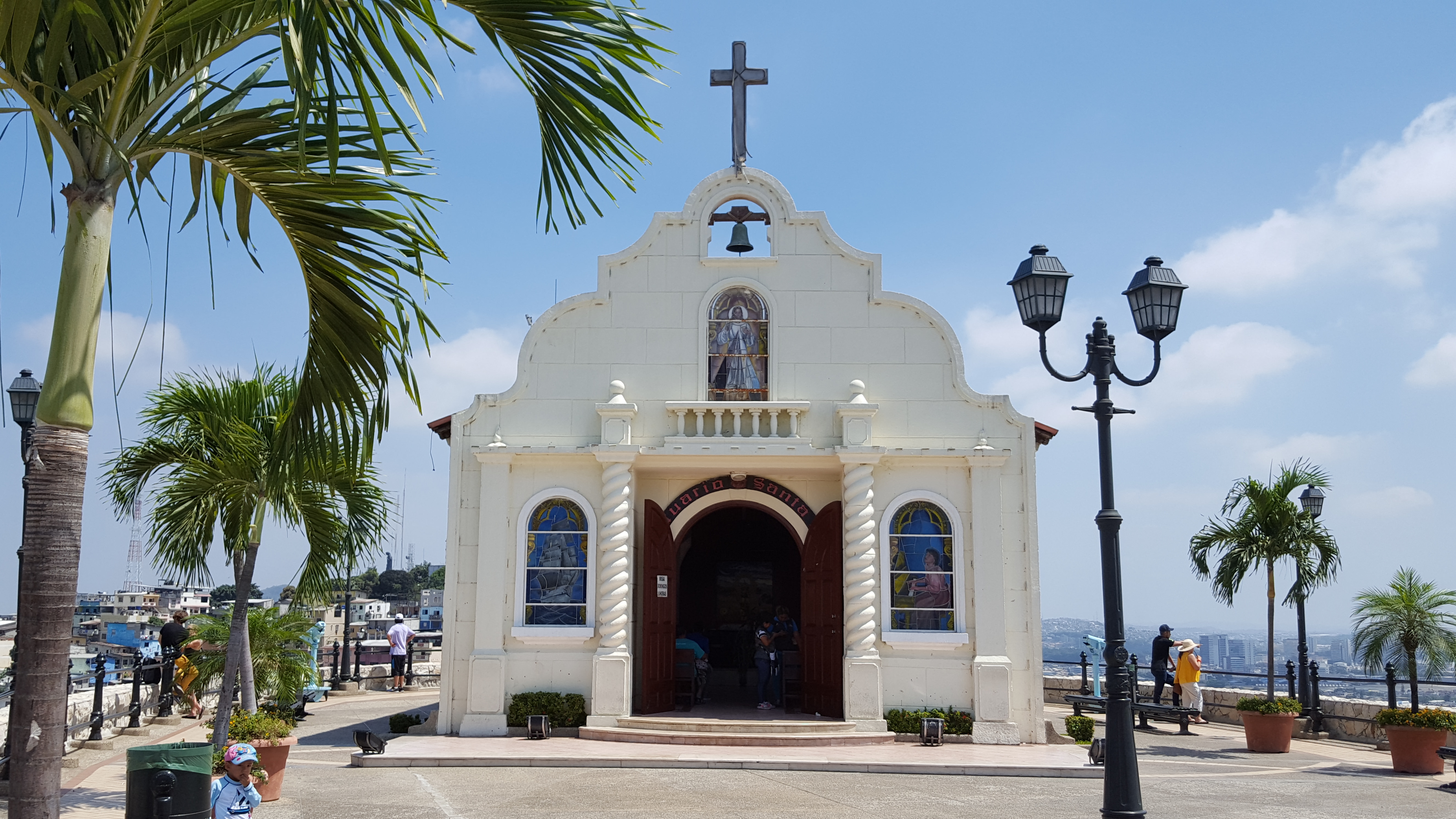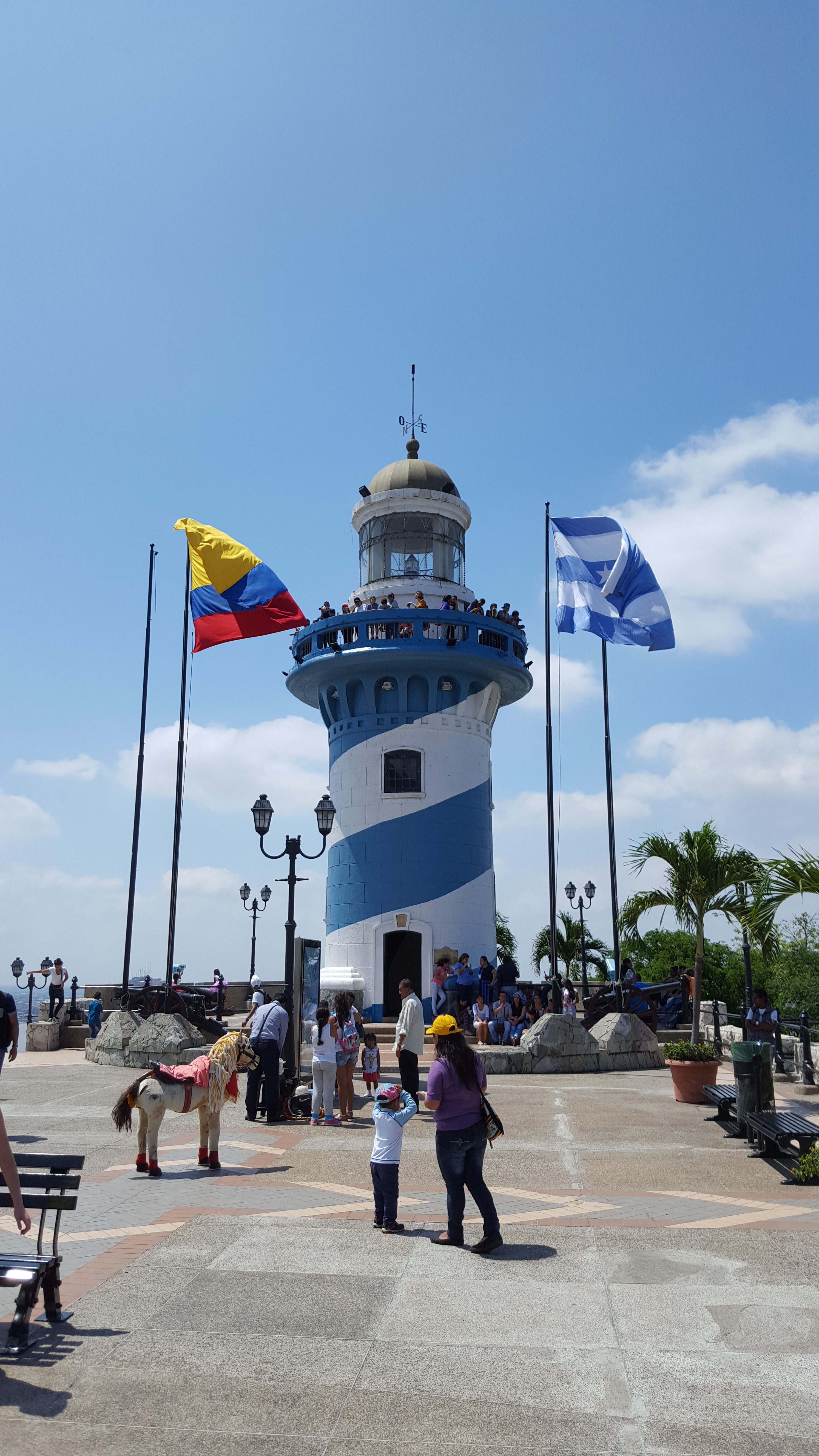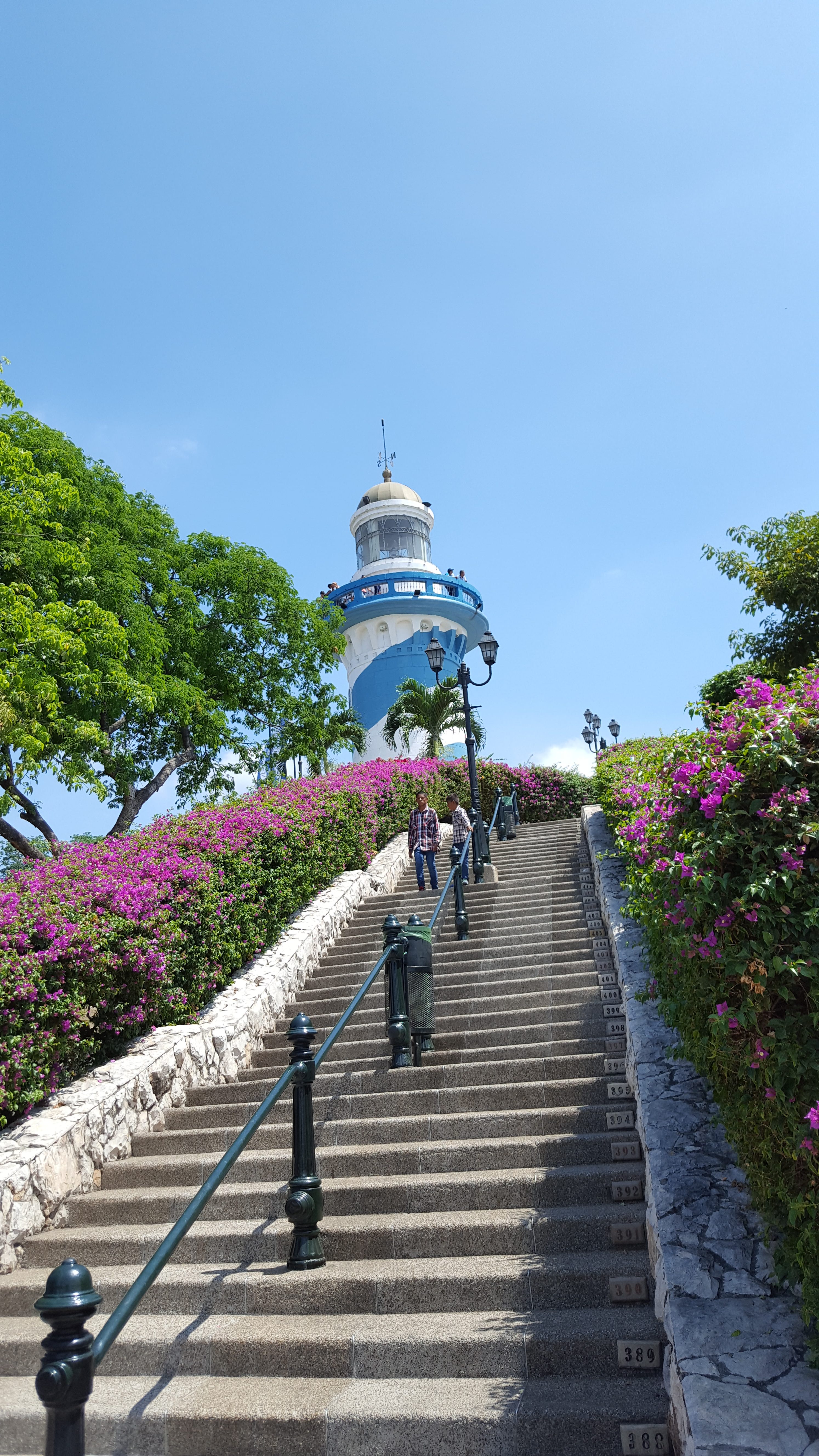 We eventually got to the ‘444 steps’ in the Las Penas neighborhood. Here, beginning at the Malecón, you walk up a set of numbered steps to the top of Cerro (hill) Santa Ana. At the top there is a lookout with a lighthouse, church, and several replica cannons and armaments from colonial times. The lookout offers a beautiful view of the city.