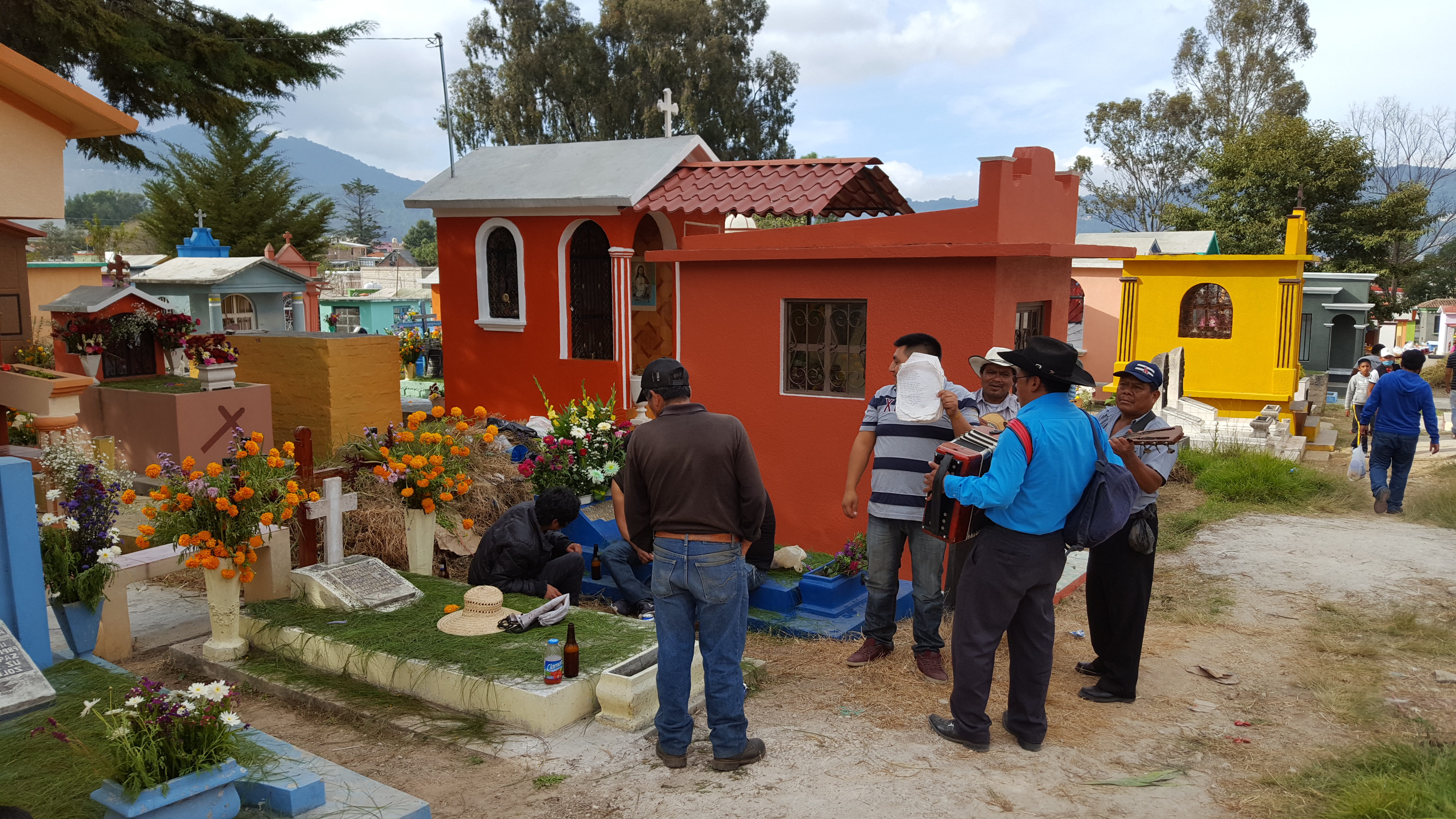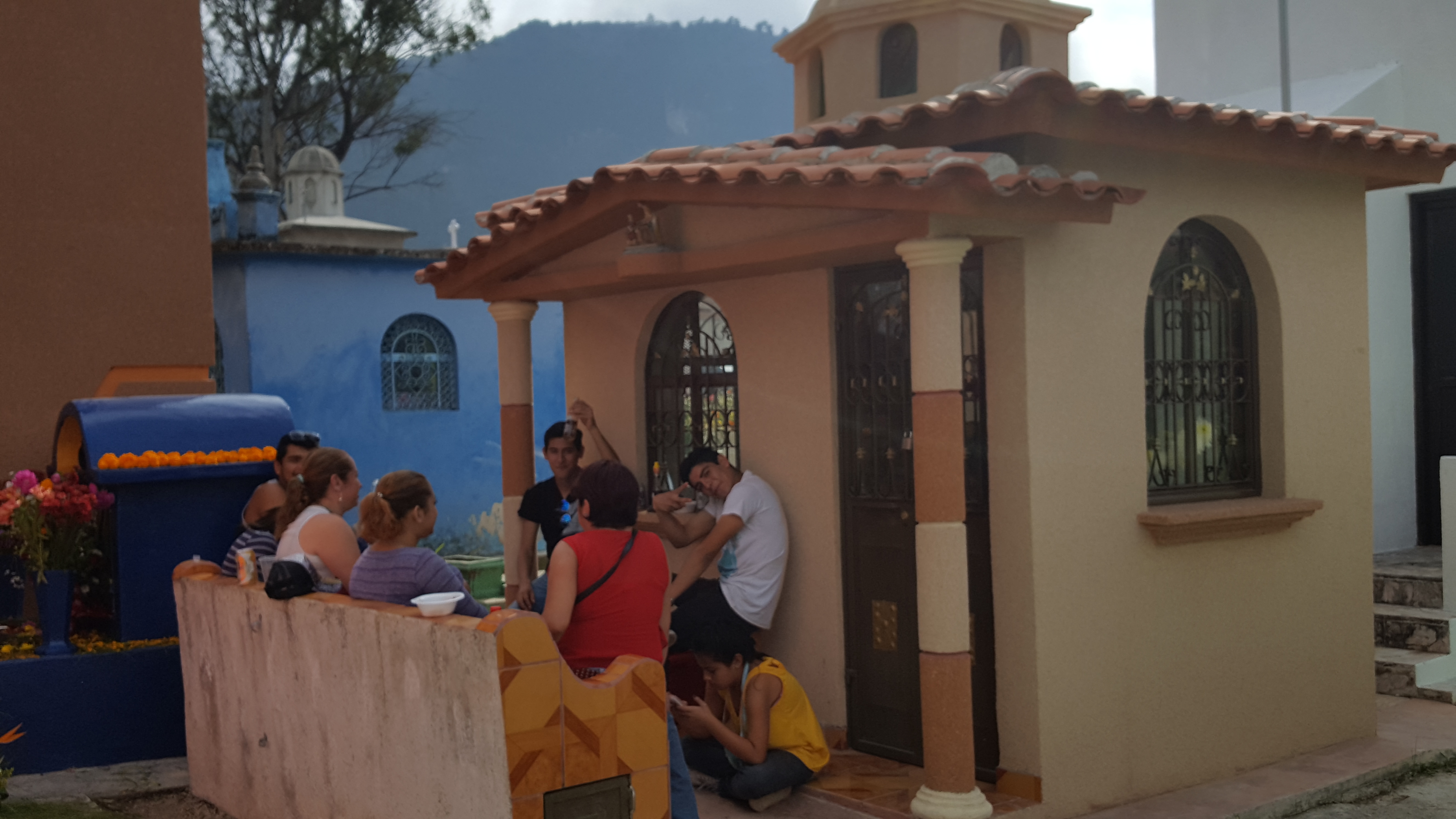 Afterwards, we went to another cemetery just outside of town. There we met Emilio and his family who were at the grave of his brother, who had died unexpectedly in his sleep two months prior. The family welcomed us to their celebration. Due to how recently his brother died, it was simultaneously a heavy affair, with his mother sitting by the grave weeping for a couple hours straight, and a fiesta, with a mariachi band singing songs. We were offered many beers and endless pox and it turned into a bit of an Irish (Mexican?) Funeral. In the late afternoon, we said our thanks and goodbyes to the Emilio y familia before returning to San Cristobal.